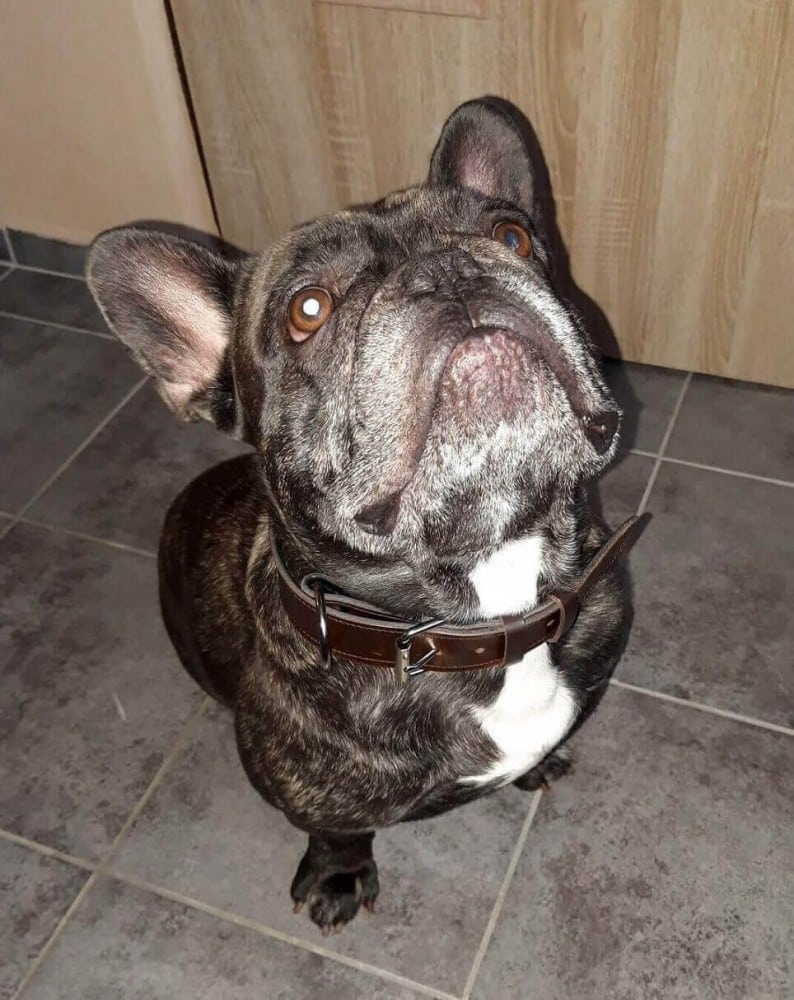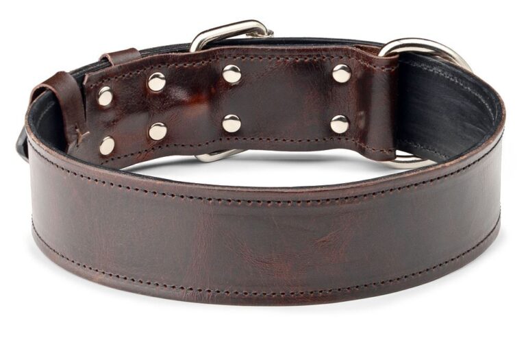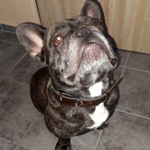Protože je obojek vyroben z nejkvalitnější full-grain hovězí kůže s nádechem tmavě hnědého mramoru, elegance a luxus, tato dvě slova Vás napadnou při pohledu na něj. Obojek je dvouvrstvý, kromě strojového prošití zcela ručně vyroben. Na rubové straně je použita pevnější černá hovězí kůže, celkem obě kožené vrstvy dosahují tloušťku cca. 4,5 mm. Obojek můžete nastavit dle svých představ, krásně ladí například i s černým hardwarem (přezkou, D-kroužkem), můžete volit jinou barvu nitě a jiné.