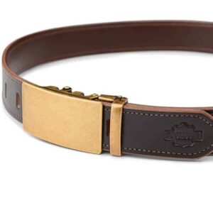 Hnědá barva má široké uplatnění, a tak se tento hnědý opasek stane Vaším zářivým doprovodem na Vaše každodenní zážitky. Napomáhá tomu i šířka opasku 3,5 cm, která je vhodná nejen do kalhot pro běžné nošení, ale i formálnější akce. Opasek je ručně vyrobený z jedné vrstvy kvalitní hovězí kůže o síle 4 mm, doplněný o krásnou sponu v barvě antické mosazi. V konfiguračním menu vpravo si můžete opasek nastavit dle vlastních představ, třeba i včetně ražby monogramu, která opasku vtiskne ještě více Vašeho Já.