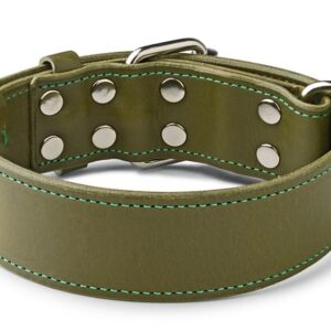 Moderní obojek pro psy vyrobený z hovězí hlazenice v barvě khaki. I u tohoto obojku je na vnitřní rubové straně osazena měkká vepřová kůže, která zajistí vyšší pohodlí pejska. Vzorový obojek je strojově prošit zelenou nití a použit kvalitní stříbrný hardware. Obojí si můžete přenastavit dle Vašich preferencí v konfiguračním menu vpravo. Obojek lze dále více personalizovat, nechat si osadit ozdoby nebo vyrazit jméno pejska, a třeba i jeho telefonní číslo.