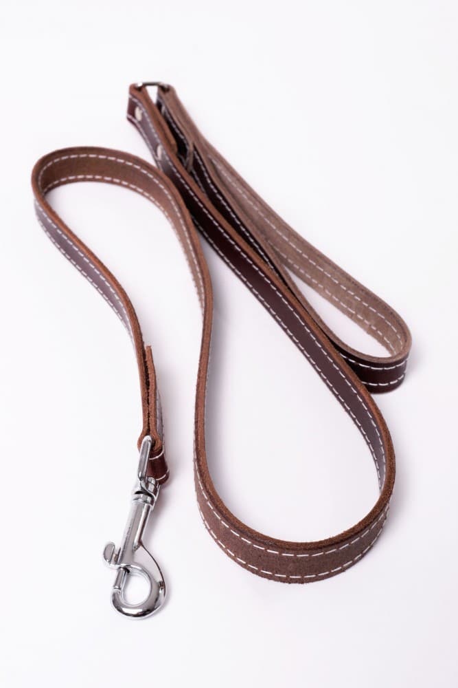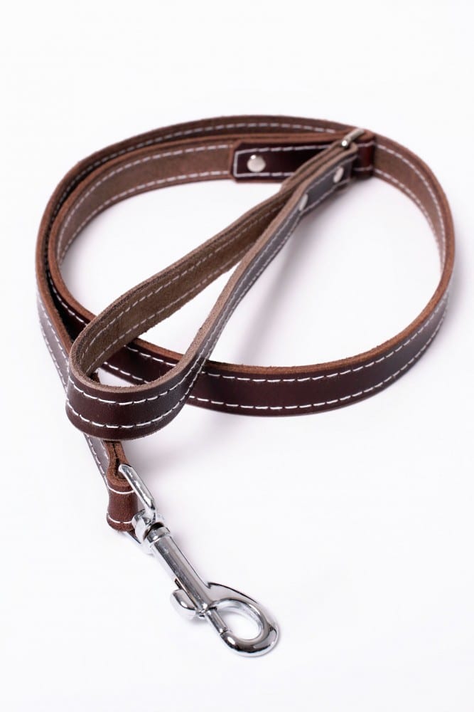 Ručně vyrobené kožené vodítko pro psa s ozdobným prošíváním vyrobené z hnědé hovězí hlazenice. Použitá hlazenice z alpských krav vyniká vyšší tuhostí, její činění probíhá v Itálii nebo Německu za použití jednoho z nejstarších způsobů vyčiňování usní – třísločiněním. Vodítko je vhodné pro všechny typy plemen.