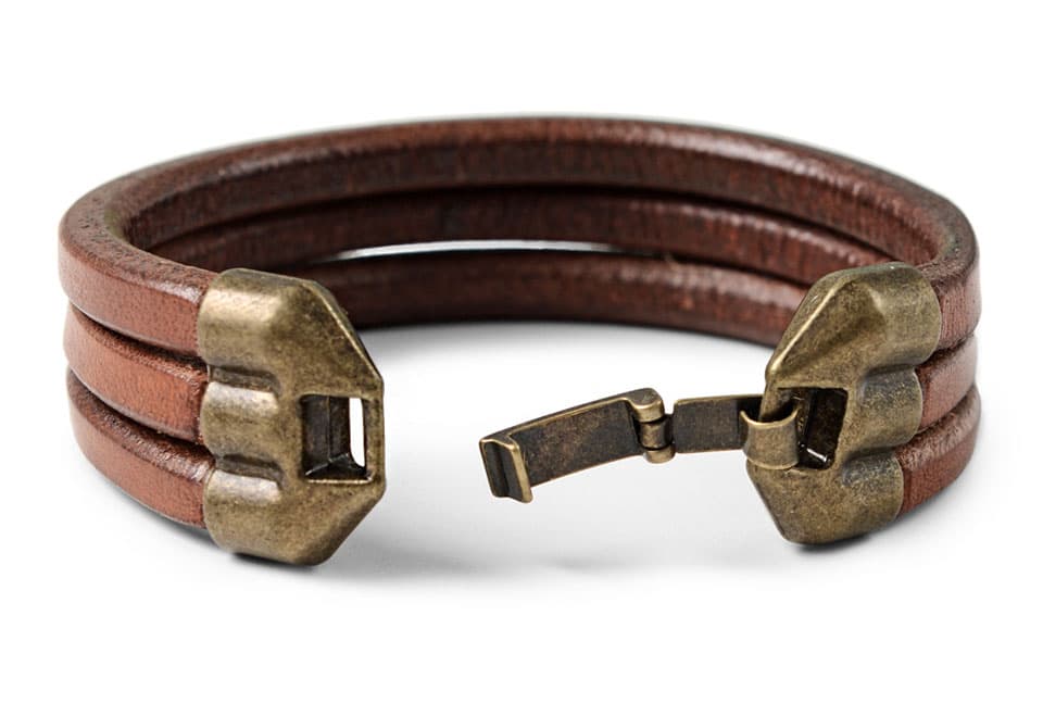 Náramek je vyroben ze třech kožených šňůr, každá o průměru 4 mm.