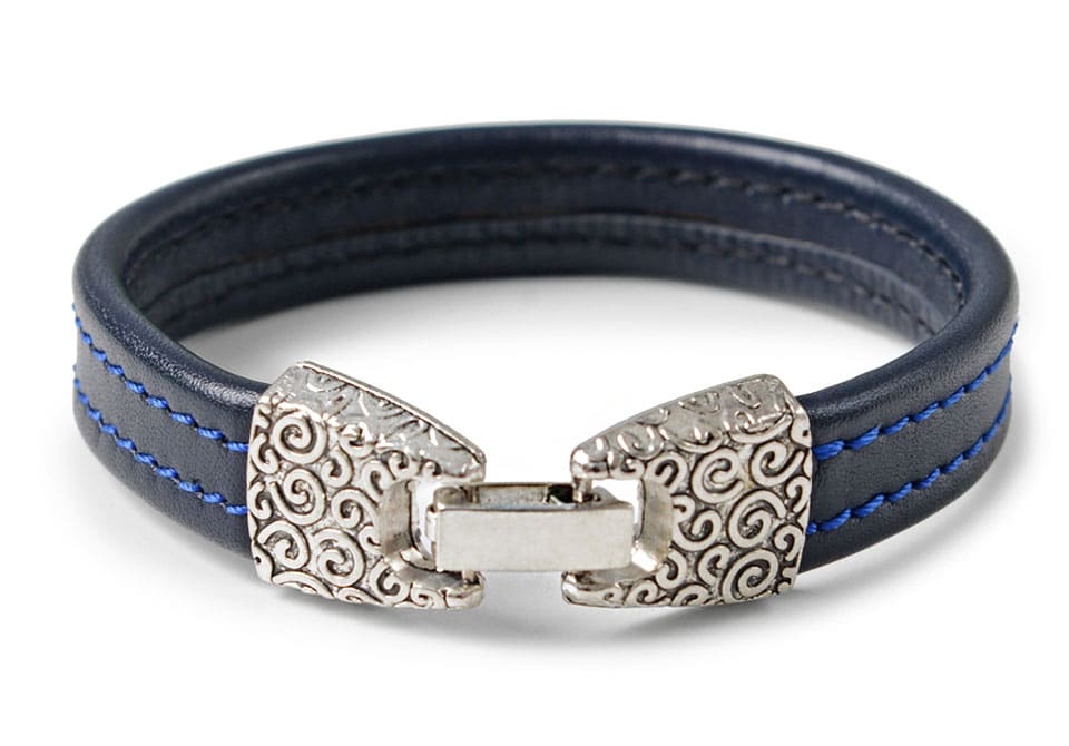 Kožený náramek z modré hovězí hlazenice a stříbrným zapínáním perfektně doladí Váš styl k dokonalosti! A pokud jej nezvažujete pro sebe, pak bude jistě i originálním dárkem. Stačí jen do pole níže zapsat obvod zápěstí! Šírka náramku 1,3 mm.