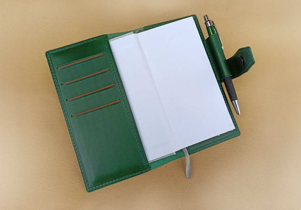 Krásný zelený kožený obal na týdenní diář, který je ručně vyroben z italské hovězí kůže, přinese do Vašeho plánování potěšení. Obal lze konfigurovat, zvolit jinou barvu kůže, nitě, anebo i ražbu Vašeho monogramu pro ještě více individualizace. Obal dodáváme bez diáře.