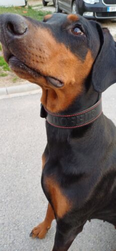 Dobrý deň. Včera nám došiel obojok od vás a veľmi potešil !!! Je krásny a perfektne sedí ! Ďakujem za krásnu prácu, za príjemnú komunikáciu a ochotu vyhovieť všetkým požiadavkám. V dnešnej dobe je takýto príjemný a ústretový prístup k zákazníkom vzácnosťou ! Ďakujeme !!!!! PS: V prílohe posielam fotky ako super Ronkovi obojok pasuje !