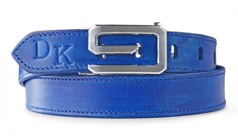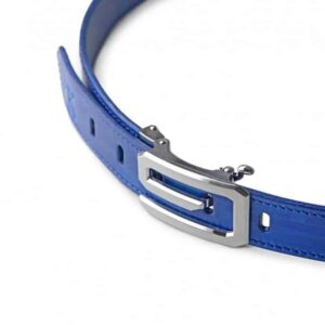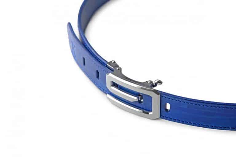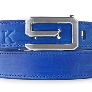 Ručně prošívaný modrý kožený opasek o šíři 3,5 cm vyrobený z přírodní hověziny. Tu barvíme do modrého odstínu v naší dílně, čímž opasek získává na unikátnosti. Pro ještě větší míru personalizace lze volit ražbu Vašeho monogramu.