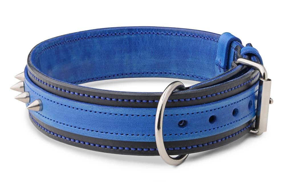 Dvoubarevný ručně vyrobený obojek, který je vhodný pro veškerá střední a velká psí plemena, nejen pro psy bull nebo bojová plemena. Osazené ostny jsou nejen efektním doplňkem, ale slouží i pro ochranu psa. V základu obojku s hroty obojku použita sedlářská niklová přezka s rolnou. Obojek je vhodný pro střední nebo velké psy, stačí jen nastavit vhodné parametry