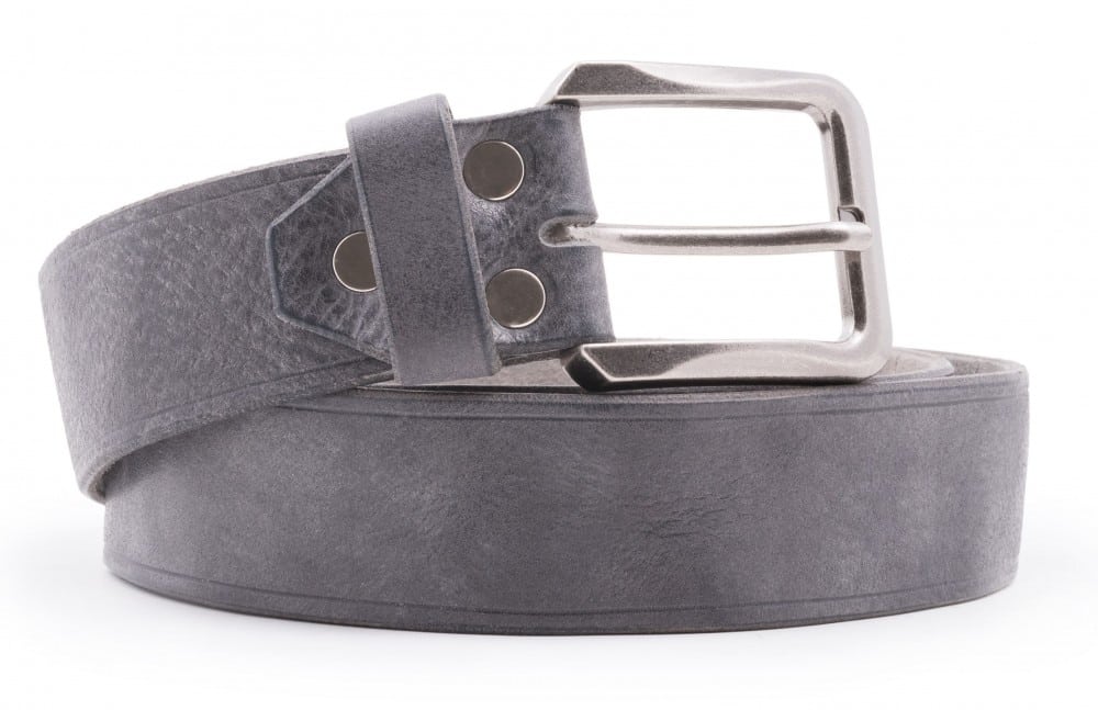 Ručně vyrobený šedý kožený opasek nýtovaný bez prošívání z hovězí hlazenice. Použitá hlazenice o tloušťce cca. 2mm z alpských krav vyniká vyšší tuhostí, její činění probíhá v Itálii nebo Německu za použití jednoho z nejstarších způsobů vyčiňování usní – třísločiněním. Barvené hlazenice jsou pak chromočiněné. V základu kožených opasků použita sedlářská kolébková přezka. Kožený pásek je vhodný na všechny typy příležitostí včetně těch formálnějších.