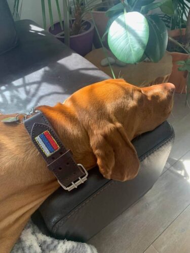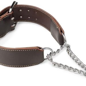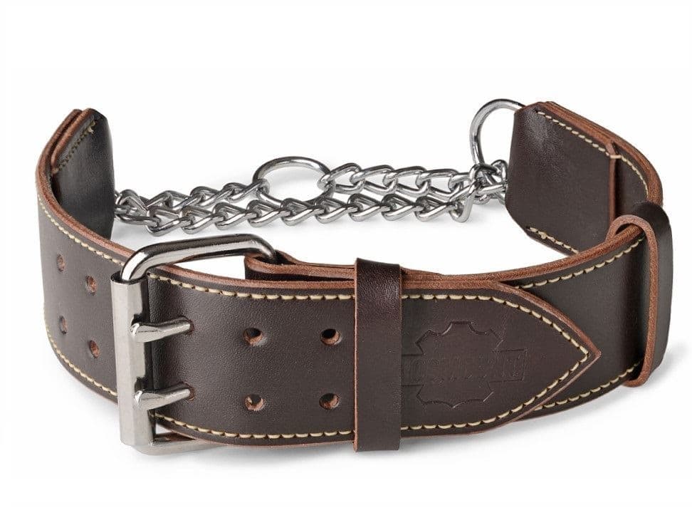 Hnědý ručně vyrobený dvouvrstvý martingale obojek pro psy s prošitím bude jako polostahovací obojek Vaším skvělým pomocníkem nejen pro výcvik pejska, své uplatnění najde i pejsků, kteří mají stejně široký nebo širší krk než hlavu. Příkladem mohou být chrti, ohaři apod. Konfigurace martingale obojku nabízí široké možnosti personalizace.