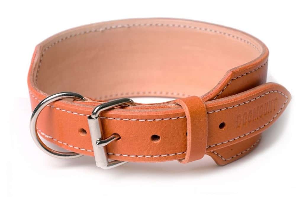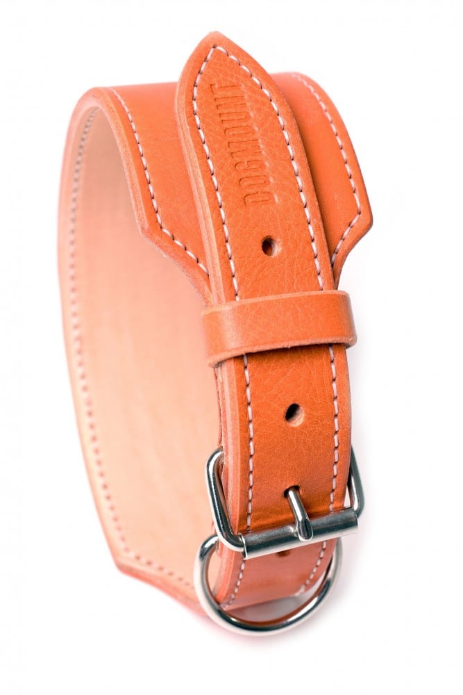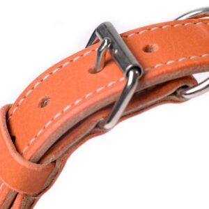 Ručně vyrobený kožený obojek pro psa s ručním prošitím dvou vrstev, kde spodní vrstva přírodní hovězí kůže slouží pro zpevnění celého obojku. V základu našich kožených obojků pro psy použita sedlářská niklová přezka s rolnou. Obojek je vhodný pro psy s dlouhým krkem, celková šířka 6 cm, u přezky pak šíře 3 cm. Obě velikosti lze upravovat!