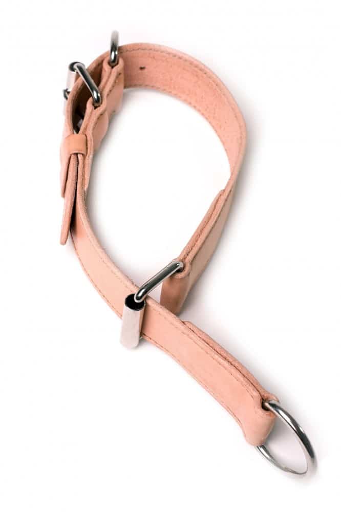 Ručně vyrobený stahovací obojek pro psy, obojek je i ručně prošívaný v provedení z přírodní béžové hlazenice. V základu stahovacího obojku pro psy použita sedlářská niklová přezka s rolnou. Obojek je vhodný pro všechny typy plemen bez ohledu na to, zda se jedná o malé, střední nebo velké psy, stačí jen nastavit vhodné parametry.